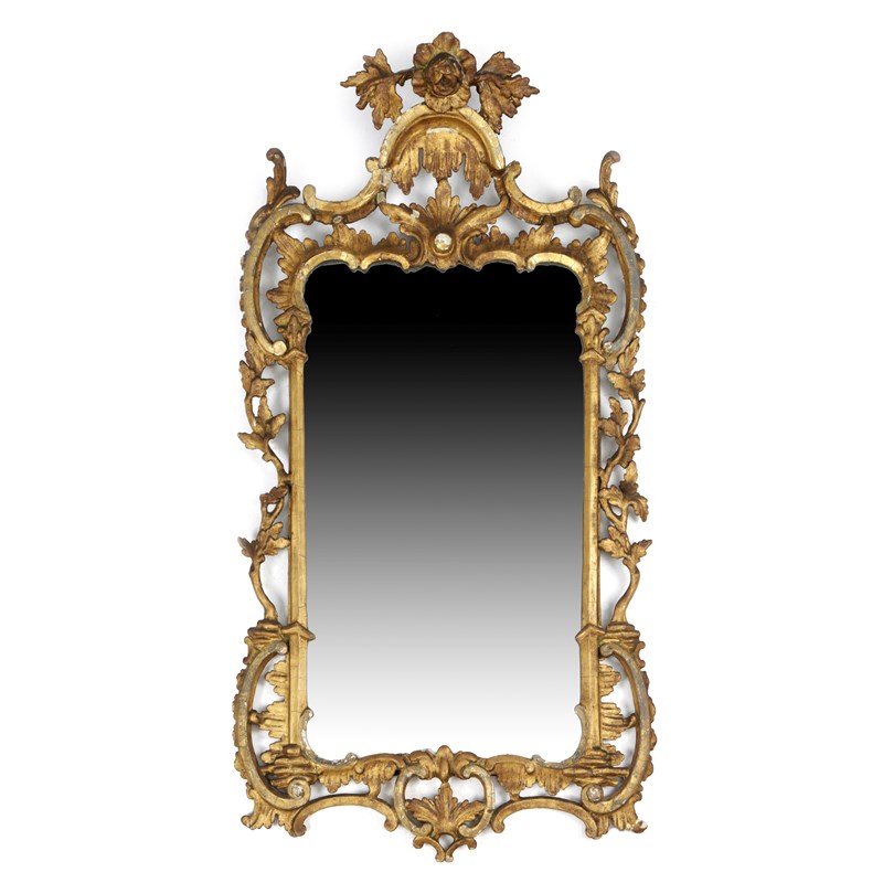 the shaped plate inside a frame carved with 'C' scrolls, columns, oak leaf branches, rockwork and frosting