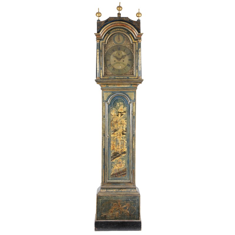 A GEORGE III BLUE JAPANNED LONGCASE CLOCK