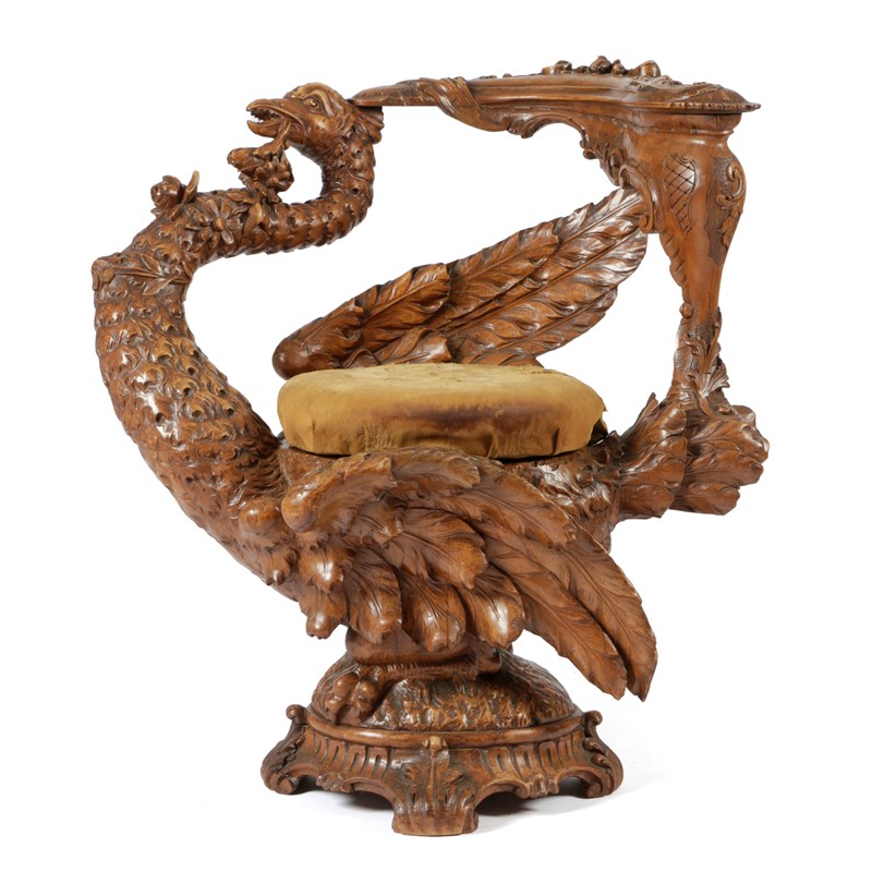 AN ITALIAN CARVED WALNUT 'OSTRICH' CHAIR