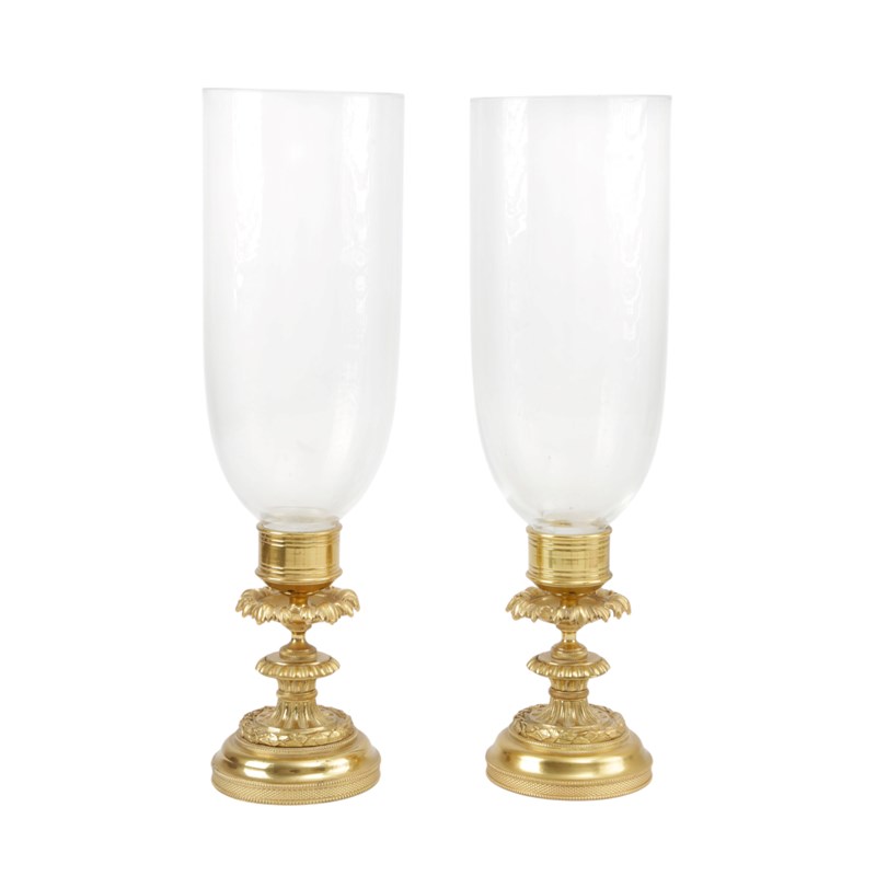 A PAIR OF WILLIAM IV GILT BRASS AND GLASS STORM LANTERNS