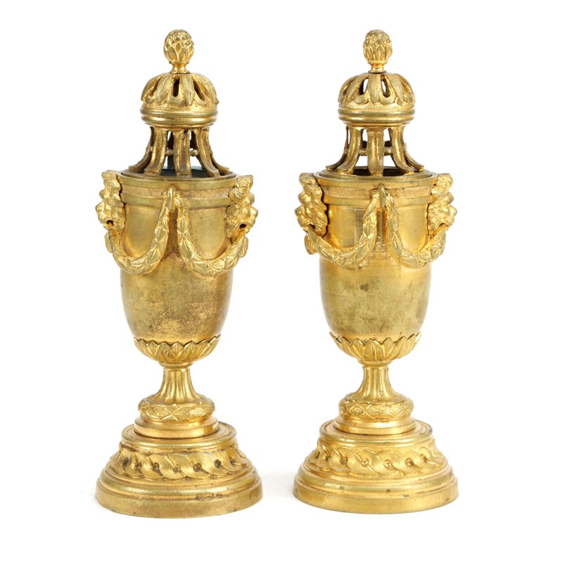 A PAIR OF GEORGE III GILT BRONZE CASSOLETTES