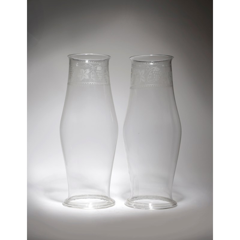 A PAIR OF VICTORIAN GLASS STORM OR HURRICANE LAMP SHADES