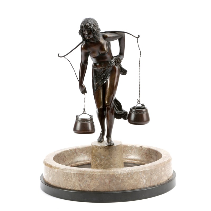 the scatily clad maiden carrying a pair of pails suspended from a yoke, on a circular marble base
