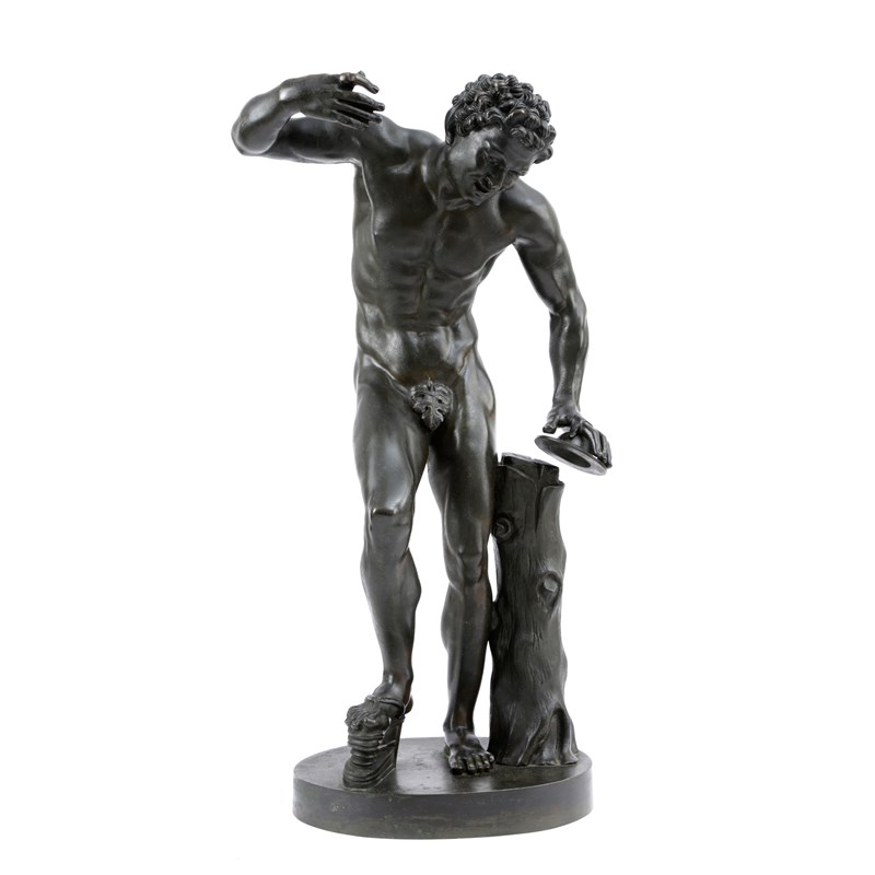 AN ITALIAN BRONZE GRAND TOUR FIGURE OF THE DANCING FAUN WTIH CYMBALS