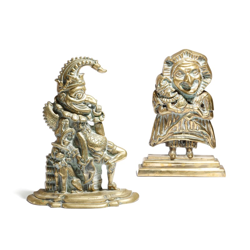 Two Victorian brass doorstops, one in the form of Punch, the other of Judy, 30.4cm high (max). (2)