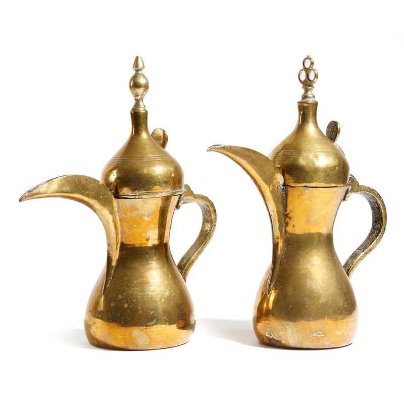 Two 19th century Arabic brass coffee pots or dallah
