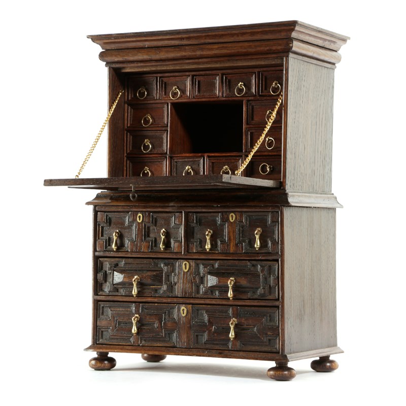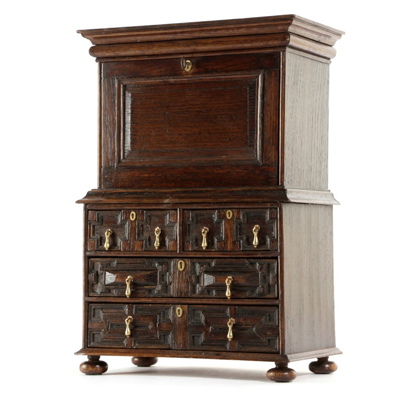AN OAK MINIATURE ESCRITOIRE