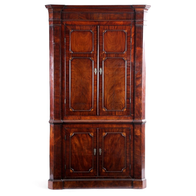 A GEORGE III MAHOGANY STANDING CORNER CUPBOARD