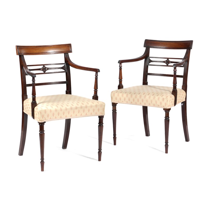 A PAIR OF LATE GEORGE III MAHOGANY ARMCHAIRS