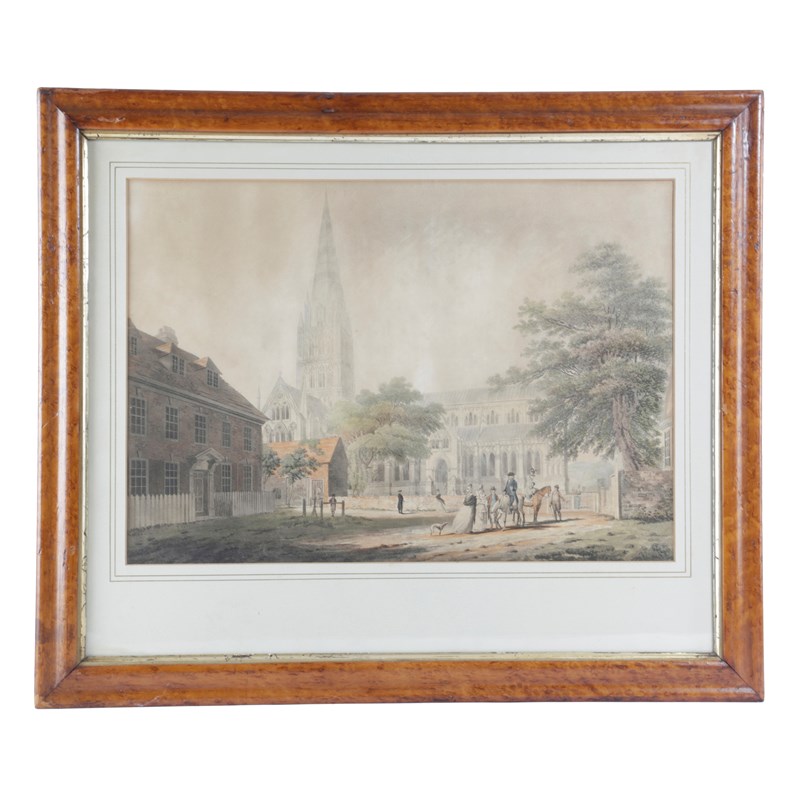 with views of Salisbury Cathedral and The New Council House, Salisbury, in glazed maple frames (2)