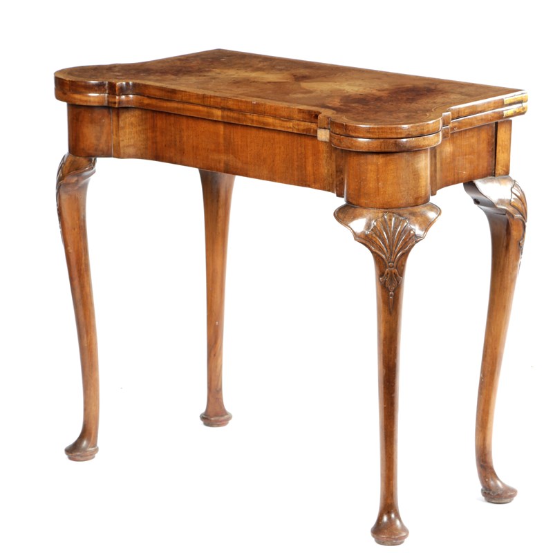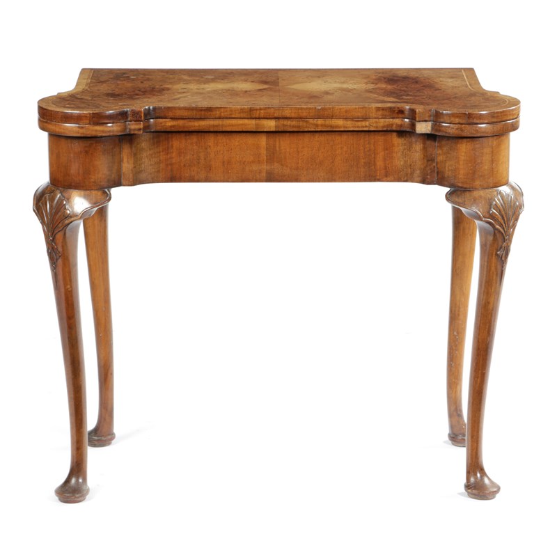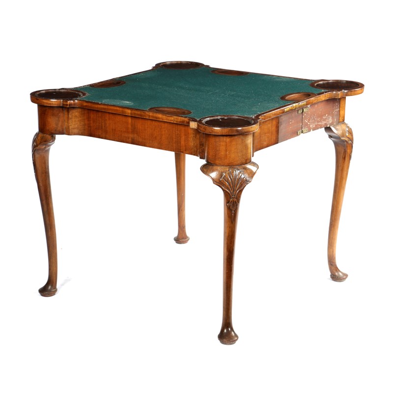 A WALNUT CONCERTINA ACTION CARD TABLE