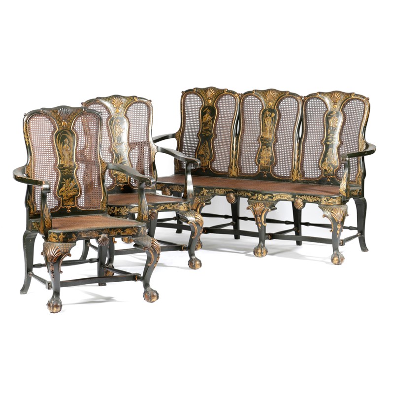 A GREEN LACQUER SUITE IN GEORGE II STYLE