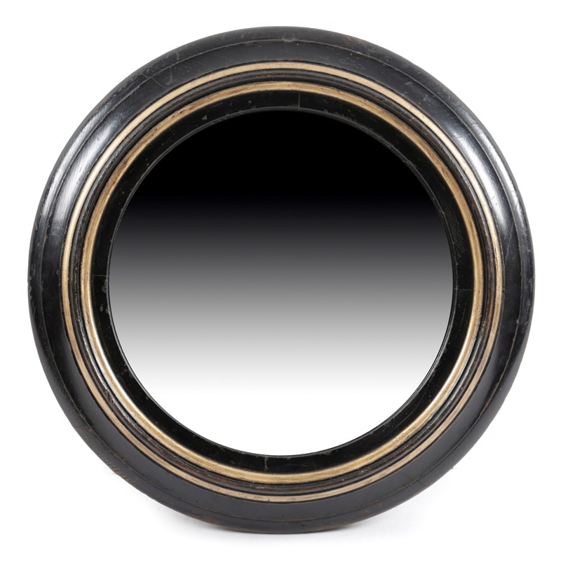 A VICTORIAN EBONISED AND GILT CONVEX WALL MIRROR