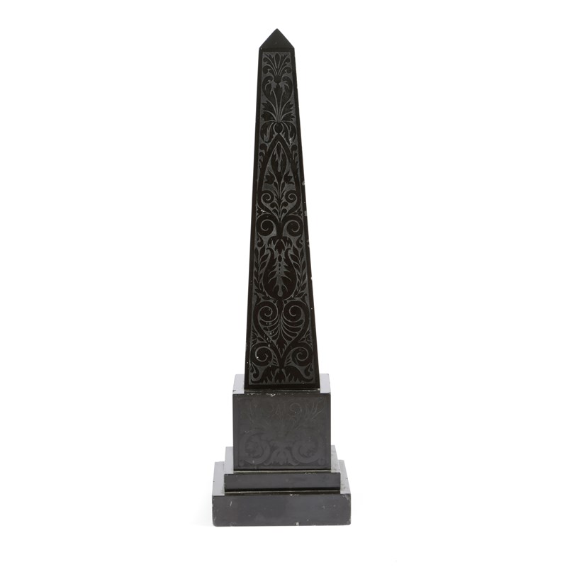 AN ETCHED AND POLISHED BLACK MARBLE GRAND TOUR OBELISK