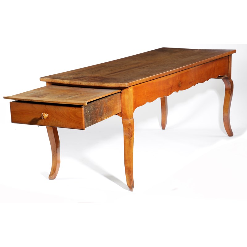 A FRENCH CHERRYWOOD FARMHOUSE KITCHEN TABLE...