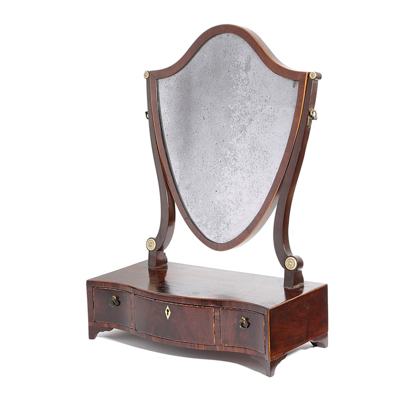 A GEORGE III MAHOGANY DRESSING TABLE MIRROR