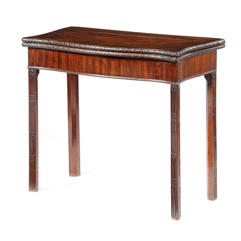 A GEORGE III SERPENTINE CARD TABLEC.1770the...
