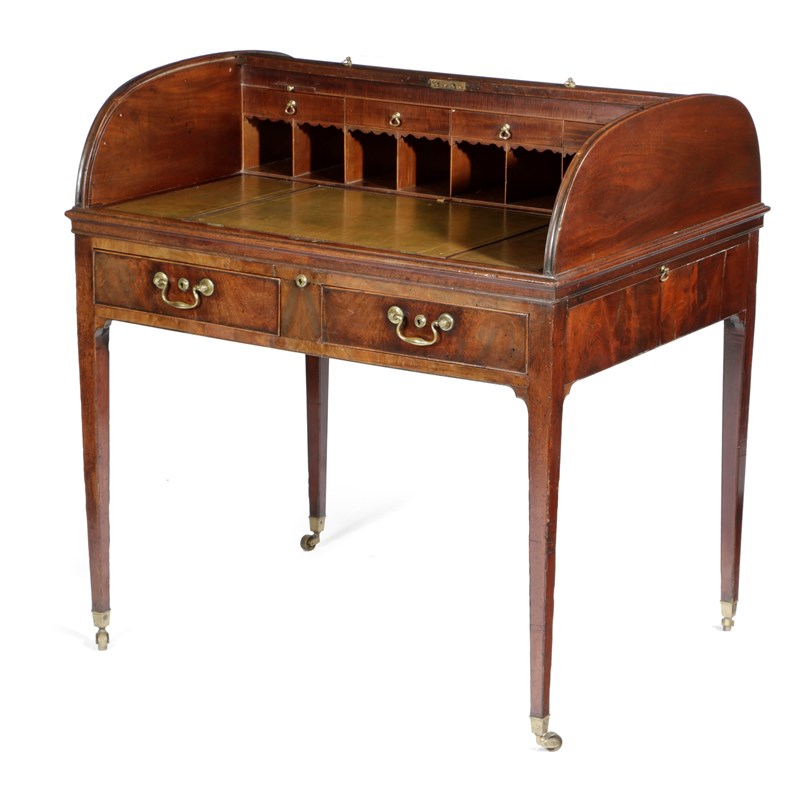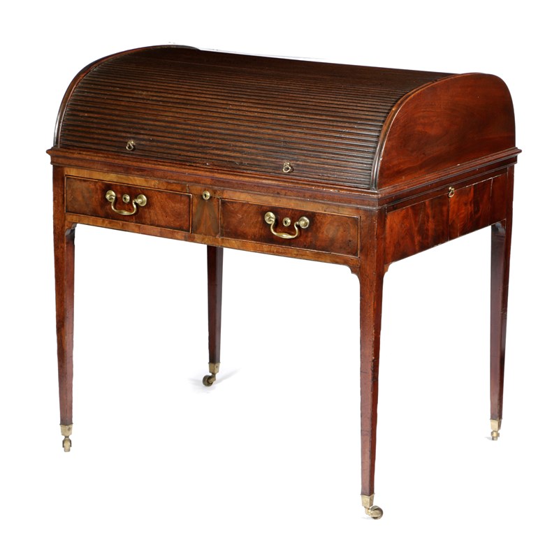 A GEORGE III MAHOGANY CYLINDER WRITING DESK