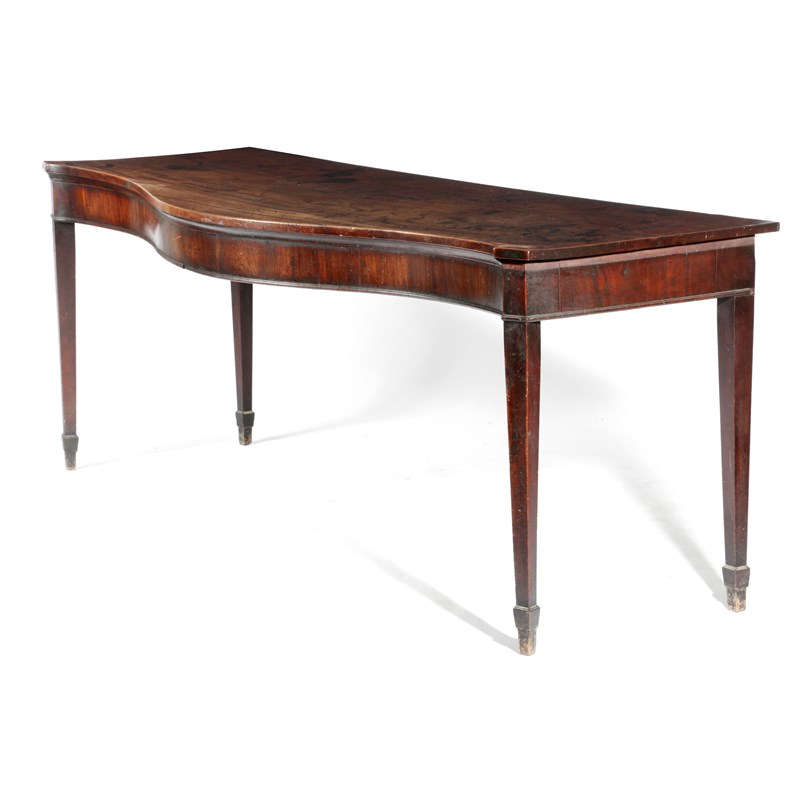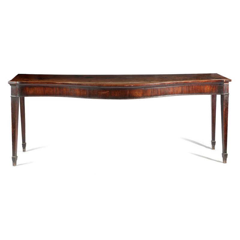 A GEORGE III MAHOGANY SERPENTINE SERVING TABLE...