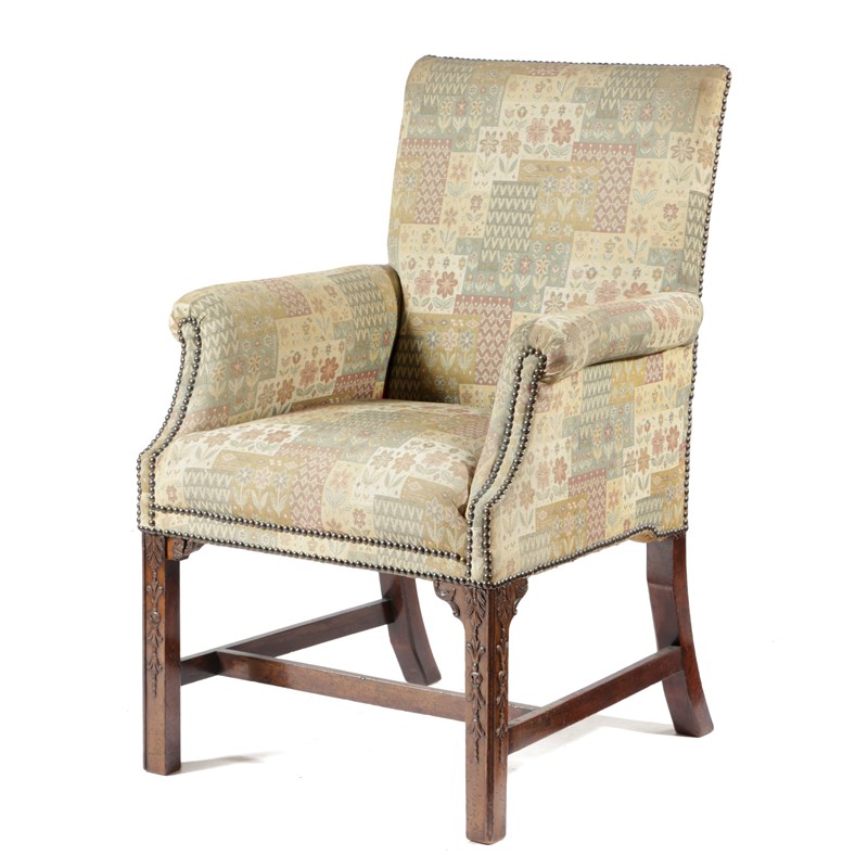 A GEORGE III MAHOGANY ARMCHAIR LATE 18TH...