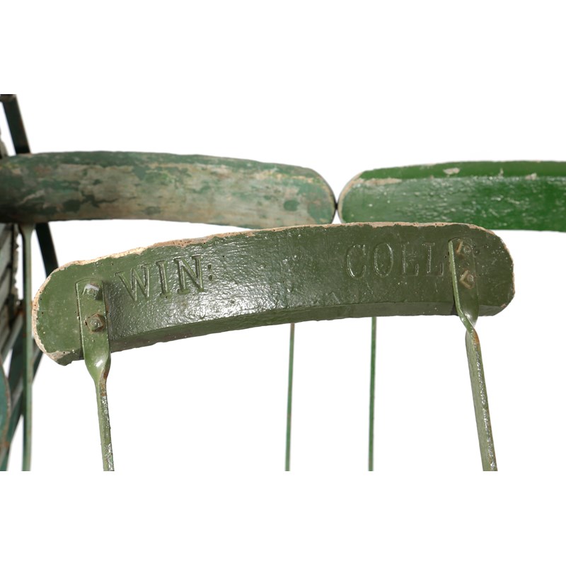 each with a wooden slatted back and seat, the backs stamped 'Win Coll' (10)