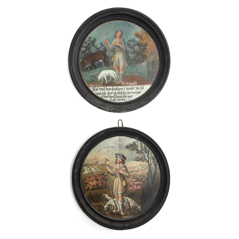 A NEAR PAIR OF BAVARIAN PAINTED RONDELS OF SAINTS