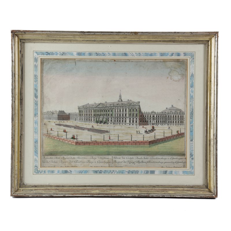 including The Hospital of Bethlehem after Maurer and two pairs of hand coloured engravings of views of buildings in Copenhagen and Holland (5)