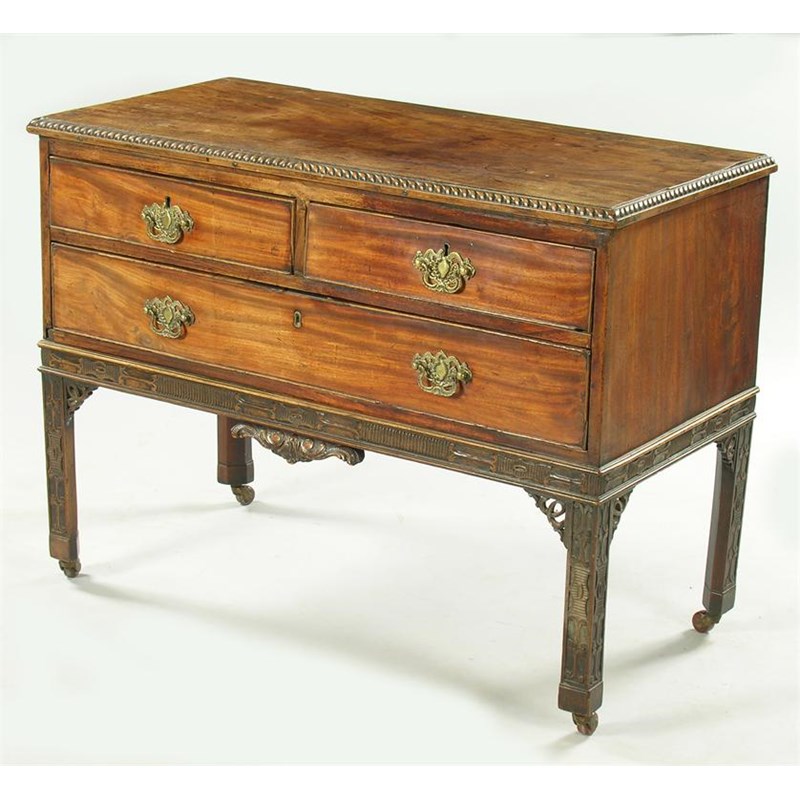 A mahogany chest on carved blind fret stand