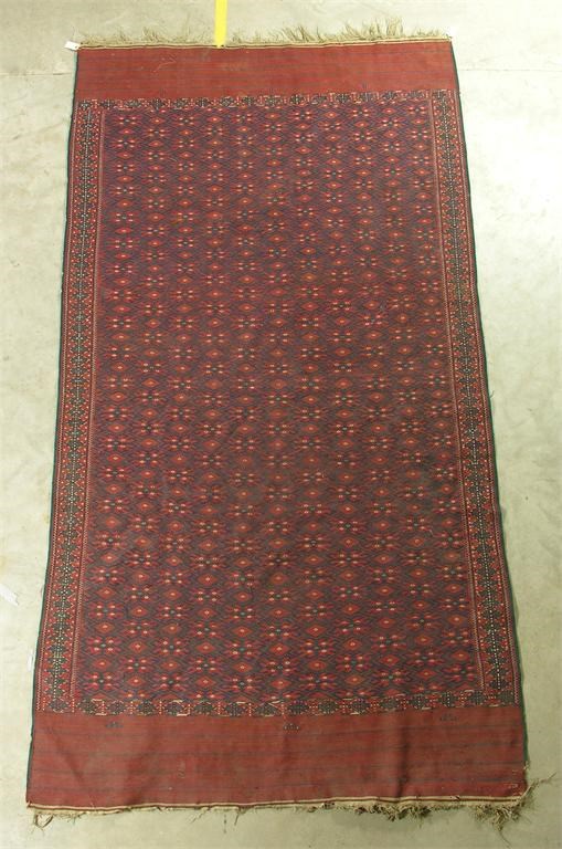 A Soumac woven Yomut Turkmen carpet, 138 x 75.5in (350.5 x 190cm).