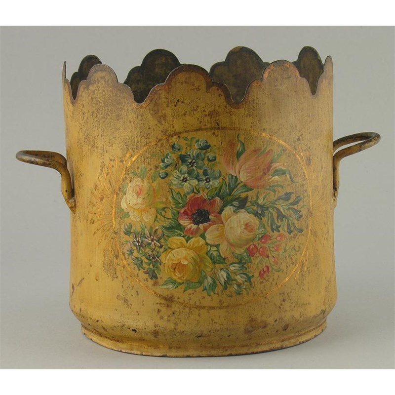 A French tole piente cache pot, 7in (18cm) h, 9.5in (24cm) across handles.