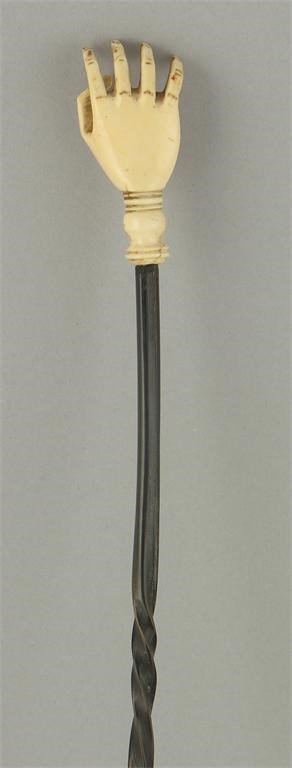 A Regency ivory and twisted whale bone back scratcher, 18.25in (46.4cm) l.