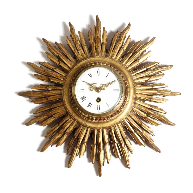 A giltwood sunburst wall timepiece