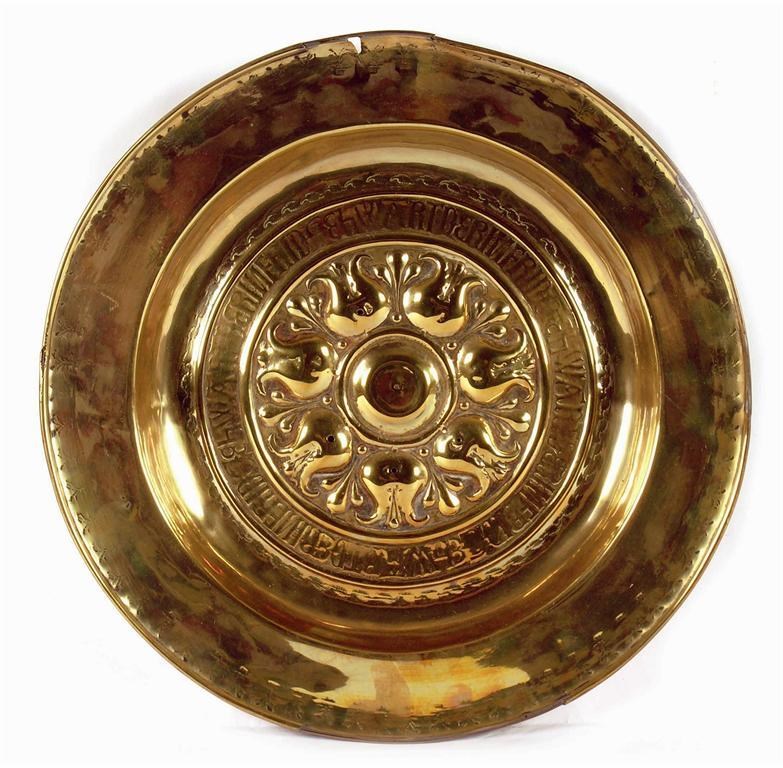 A brass alms dish
