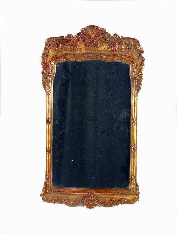 A George I style giltwood and gesso wall mirror, with shell and foliage decoration, 28.5 x 16in (72.5 x 40.5cm).