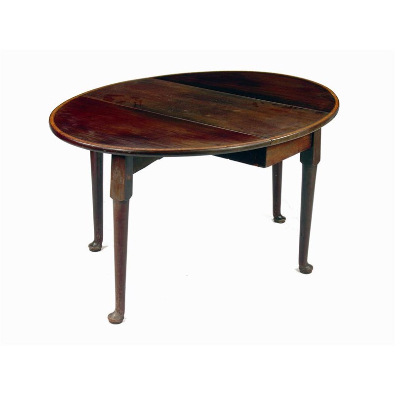 A mid 18th century cuban mahogany drop leaf table, the oval top with later satinwood banding on turned club legs to pad feet, 28in (71cm) h, 54 x 41in (137 x 104cm).