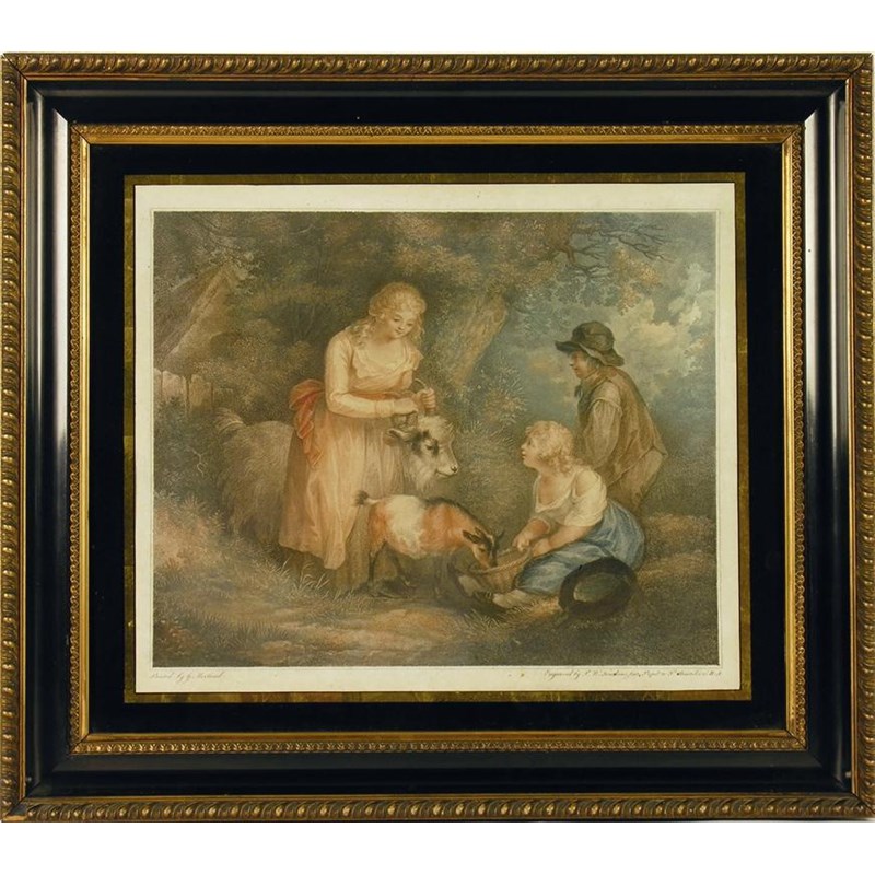 After George Morland. Children with goats, colour stipple engraving, 12 x 14.5in (30.5 x 37cm) and another engraving Children with chickens. (2)