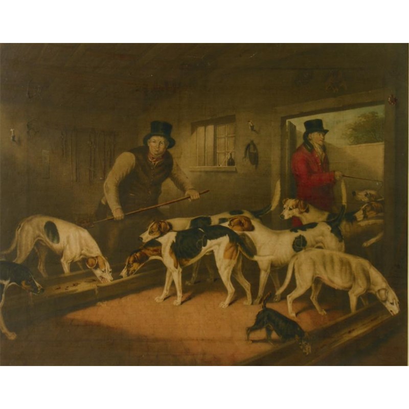 A hunting colour mezzotint, 'The Reward after Chase', 19 x 23in (48 x 58.5cm).