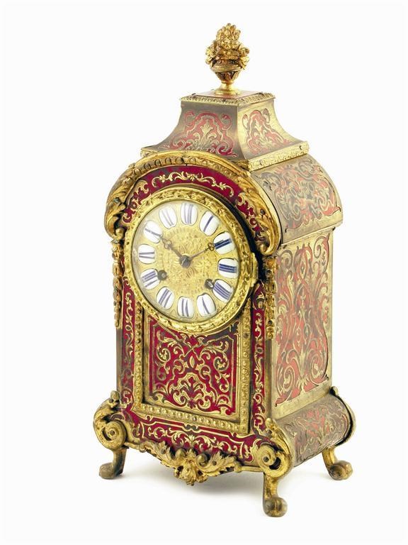 A 19th century French 'buhl' mantel clock, the 8 day movement striking on a bell, the back plate stamped 'Japy Freres & Ce,' to a gilt dial with enamel Roman numerals, the case with a vase of flowers surmount, 12.25in (31cm) h.