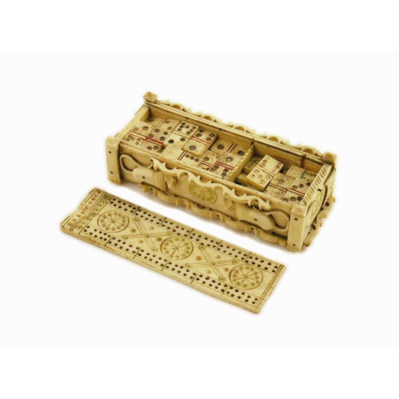 A 19th century Napoleonic prisoner carved bone dominoes casket