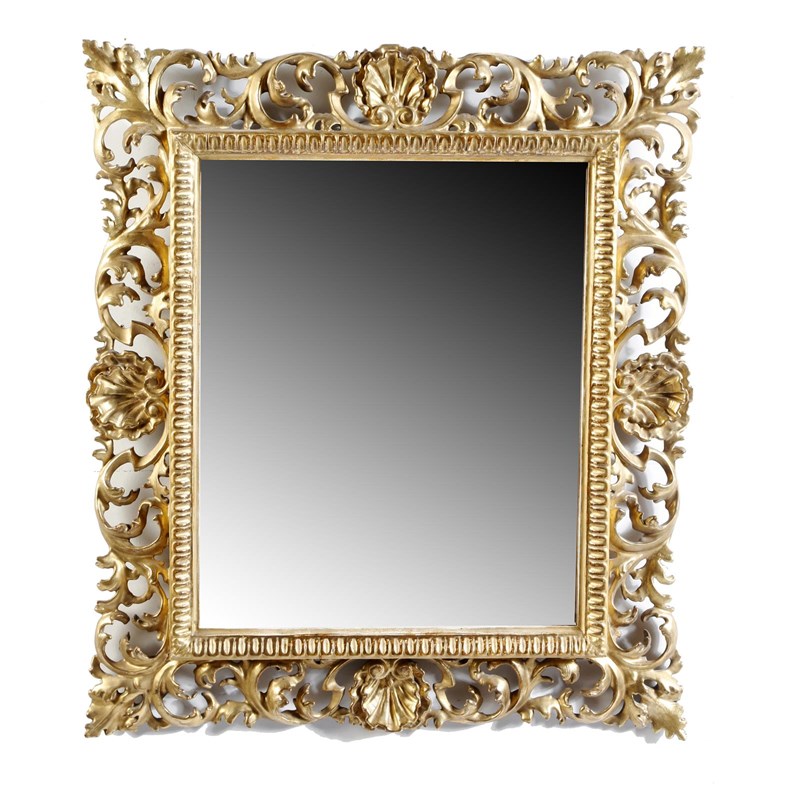 A late 19th century Italian Florentine giltwood wall mirror, the later rectangular plate with a leaf and shell carved frame, 59.5 x 51.6cm.