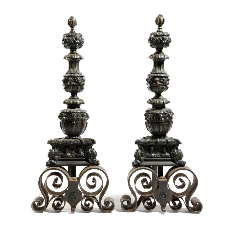 A pair of Italian bronze andirons in Renaissance style