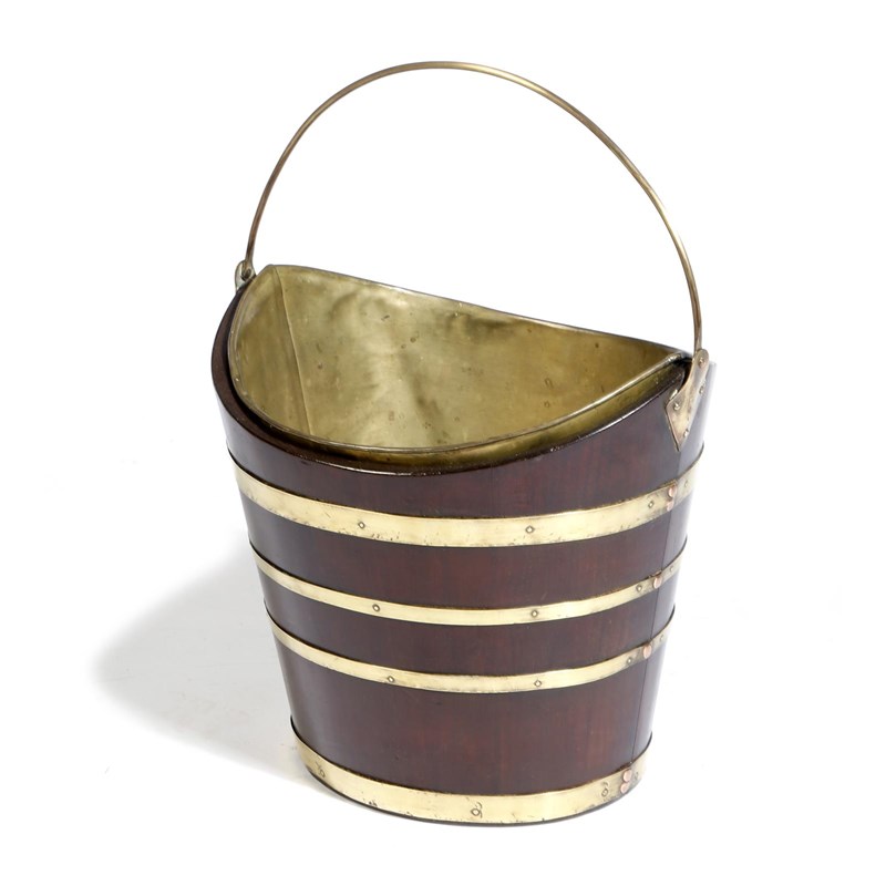 A 19th century mahogany and brass bound navette shape peat bucket