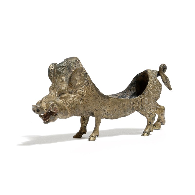 A Victorian gilt bronze pen wipe, in the form of a wild boar (lacking bristles), previously mounted, 12.5cm long.