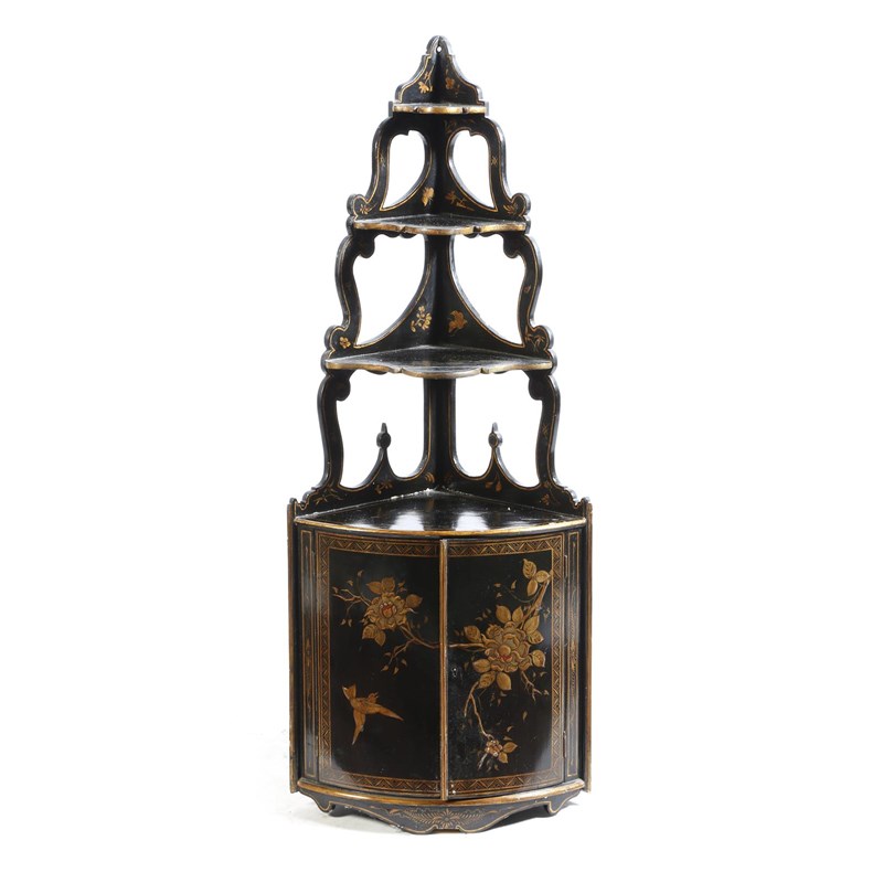 A japanned hanging corner cabinet