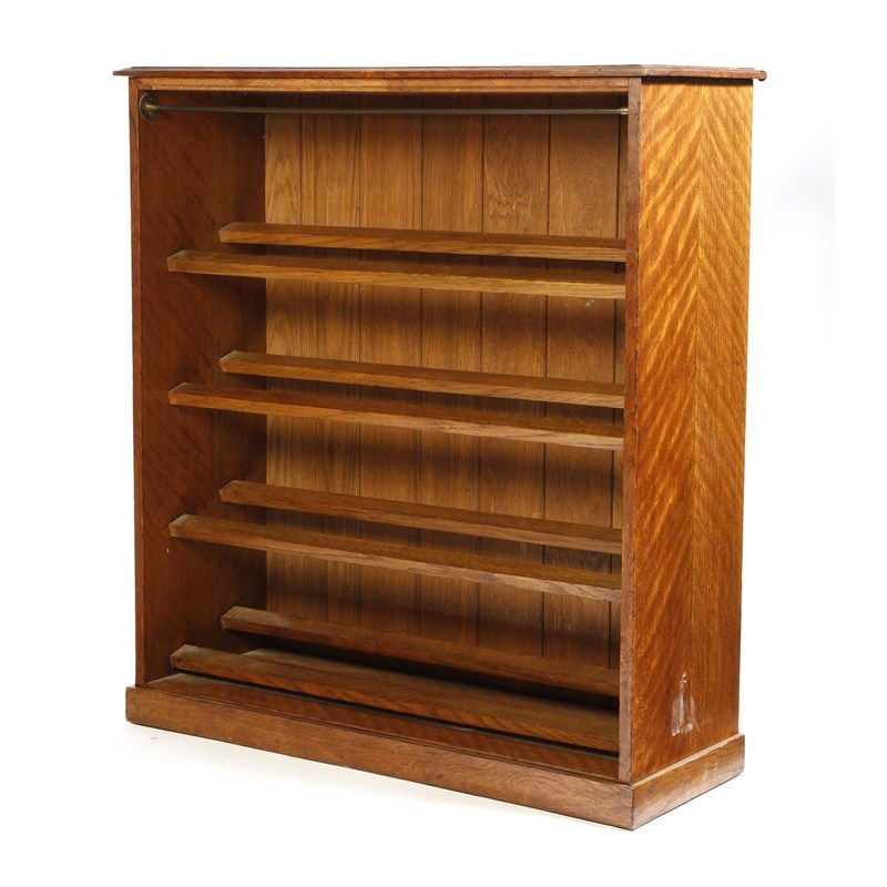 An oak shoe cabinet, with a brass hanging rail and four racks, early 20th century, 104cm high, 94.4cm wide, 34.8cm deep.