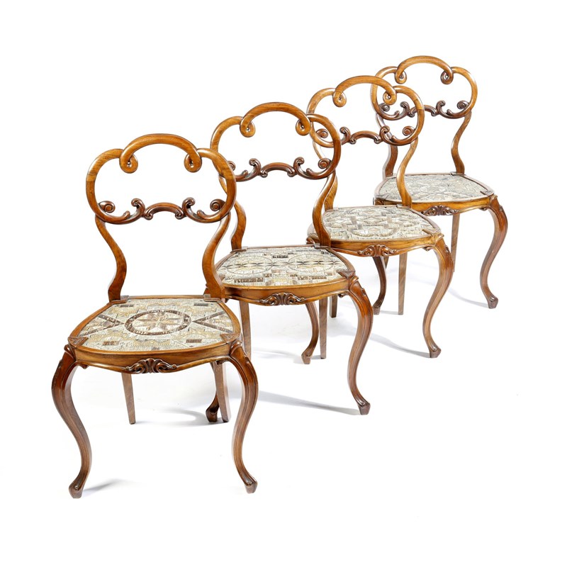 Four 19th century Anglo-American walnut side chairs