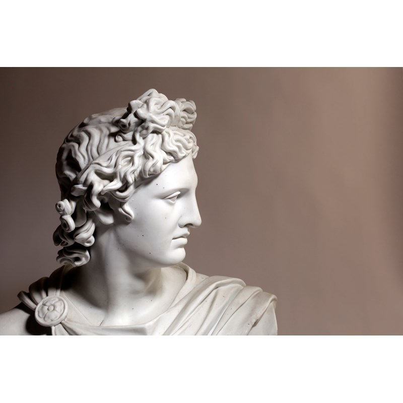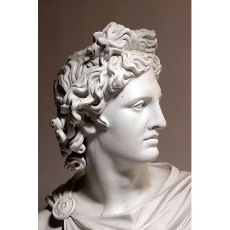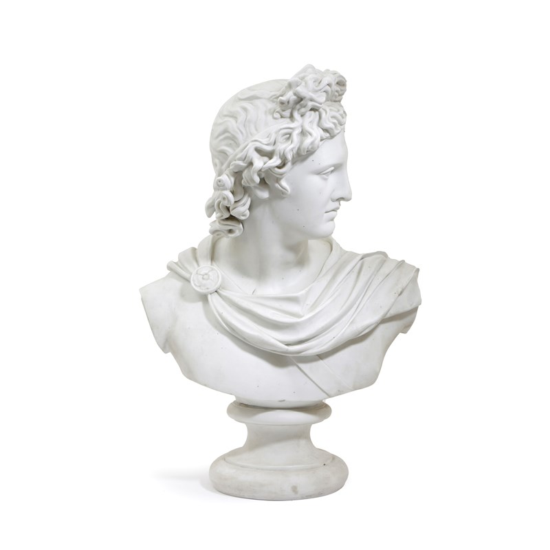 A FRENCH BISCUIT PORCELAIN GRAND TOUR BUST OF APOLLO BELVEDERE