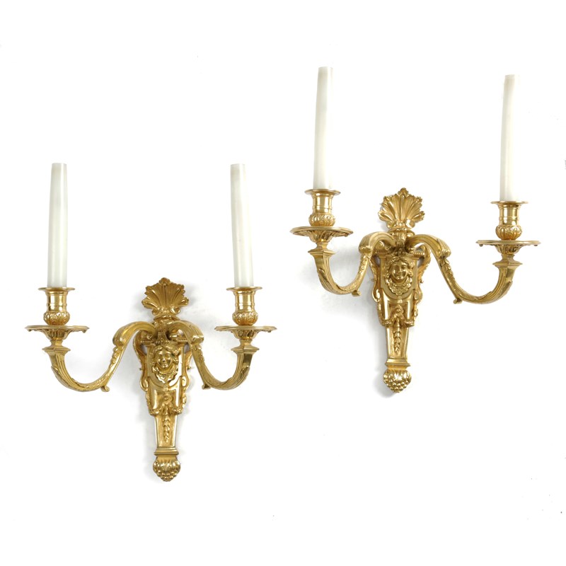 A PAIR OF FRENCH ORMOLU WALL LIGHTS