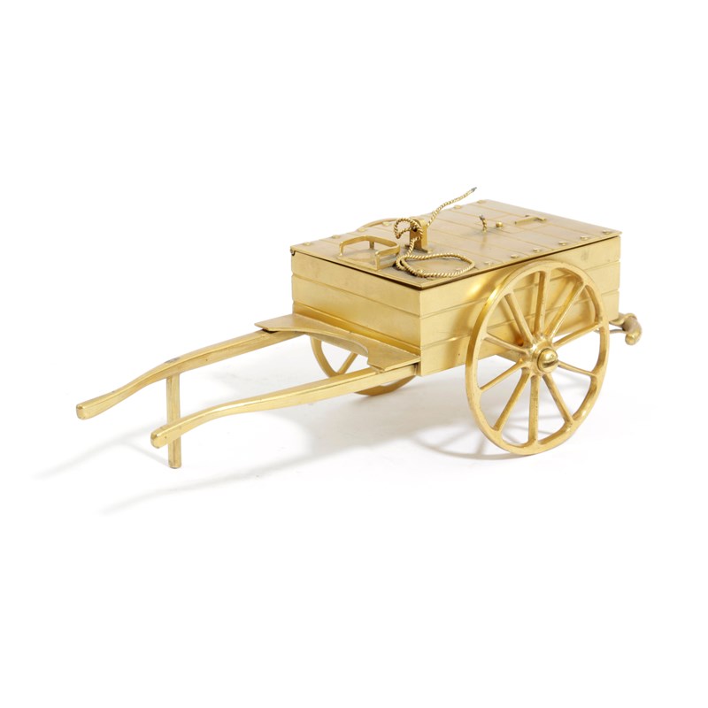 A GILT METAL MODEL OF A TWO WHEELED CART