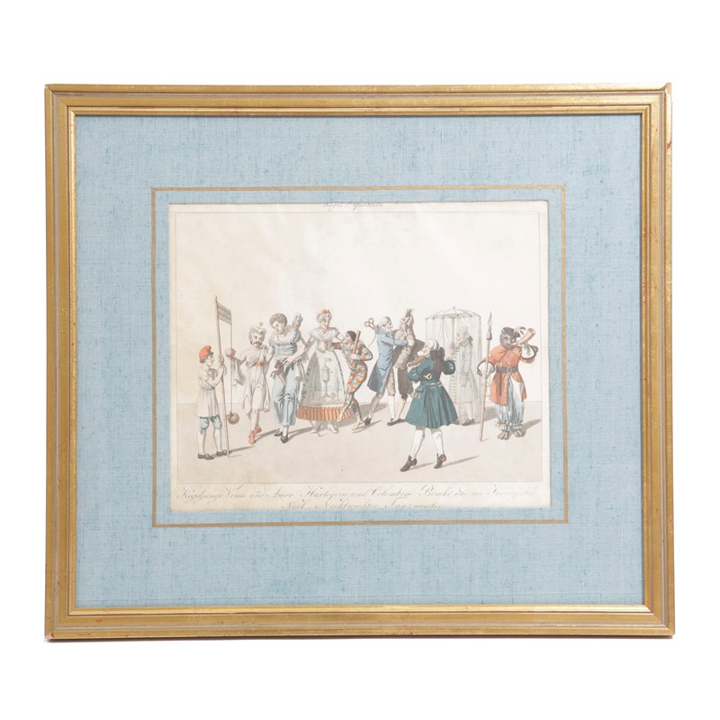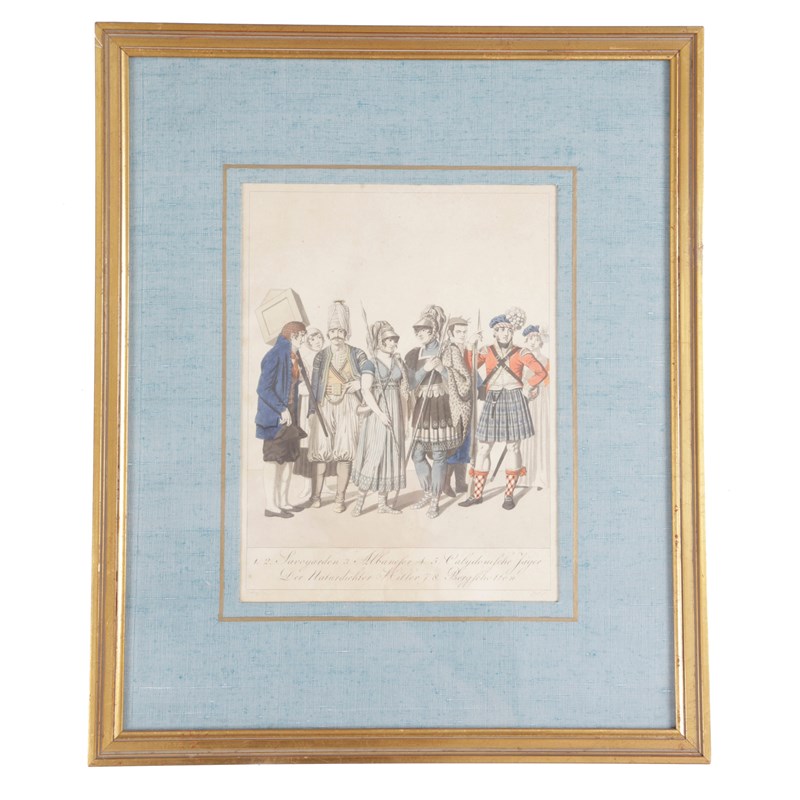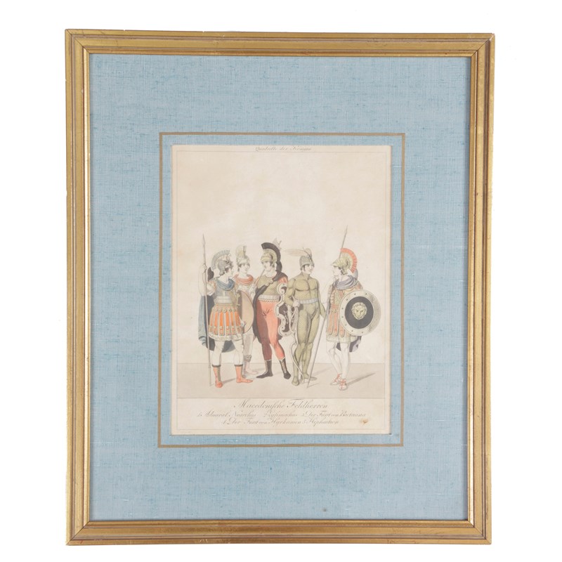 A SET OF FIVE COLOURED GERMAN ENGRAVINGS